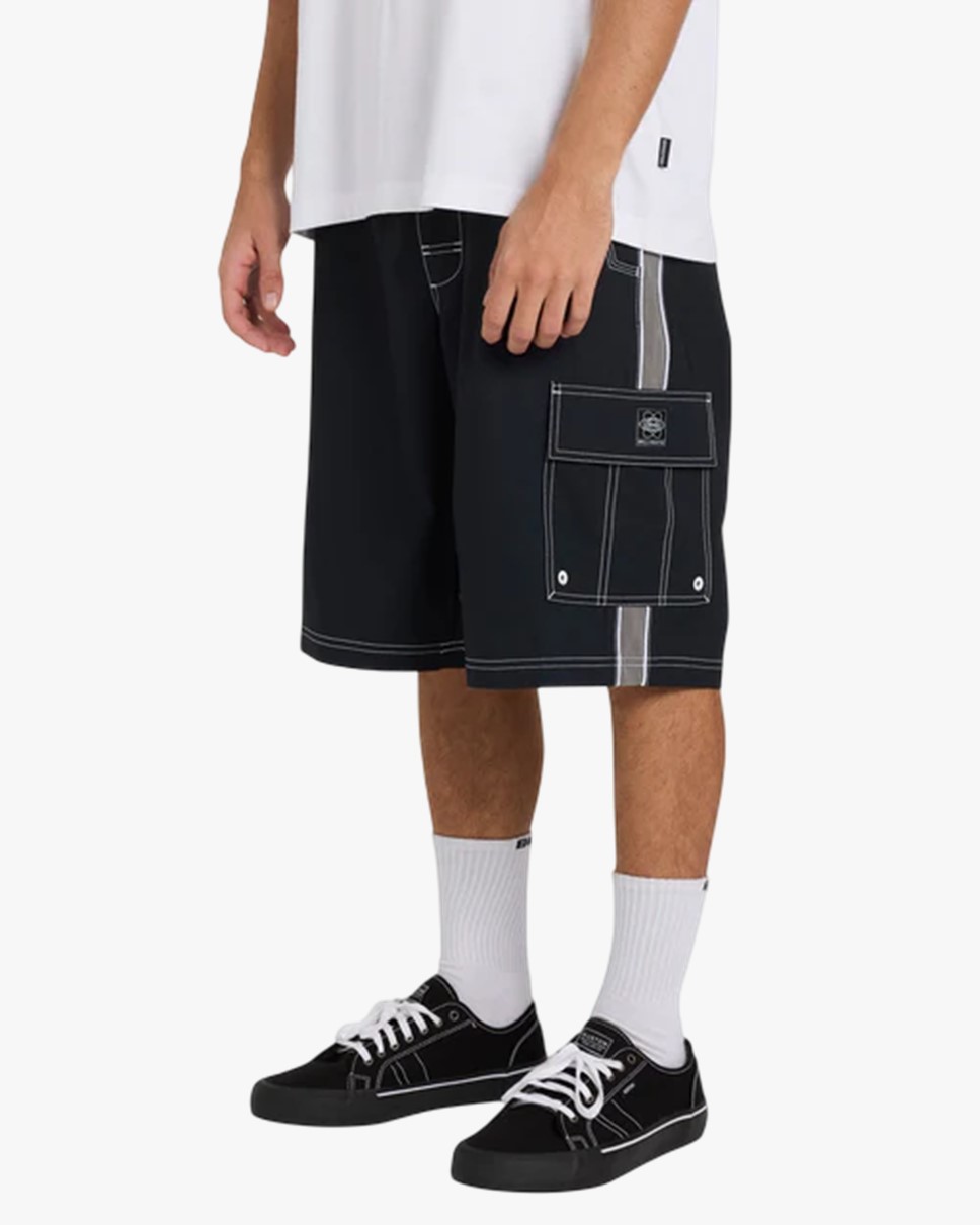 Throw On 3.0 22" Boardshorts — 22" long boardshorts with an elastic waist for comfortable movement Side panels with stitched piping details add style and a cool touch Cargo pockets with screen prints and embroidered logos, featuring exclusive Spec 73 trims