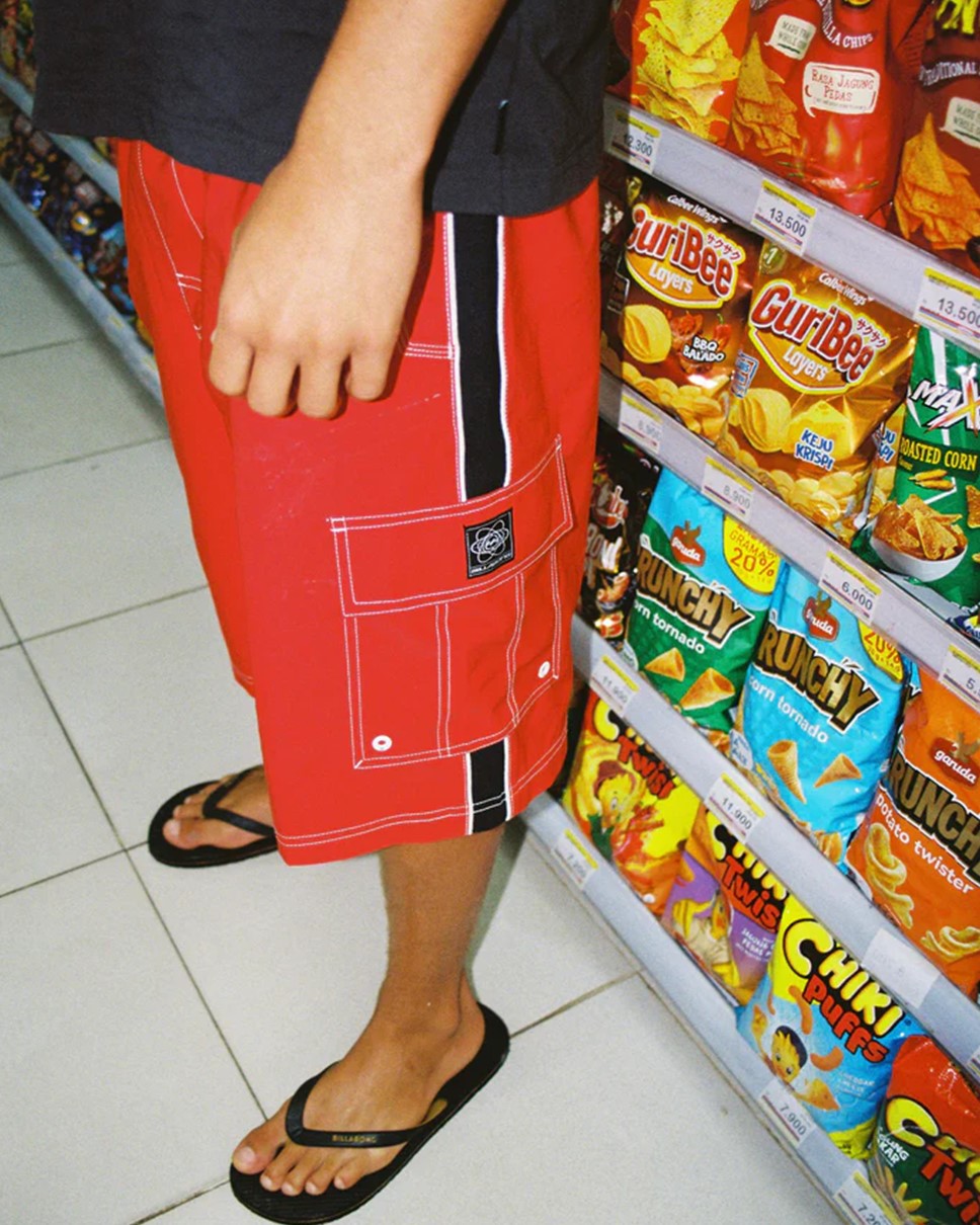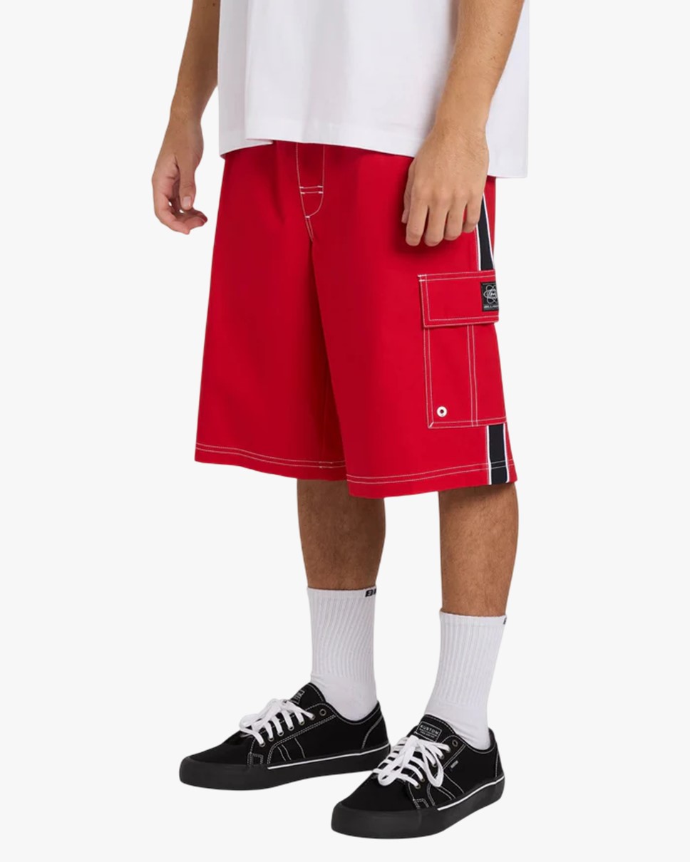 Throw On 3.0 22" Boardshorts — 22" long boardshorts with an elastic waist for comfortable movement Side panels with stitched piping details add style and a cool touch Cargo pockets with screen prints and embroidered logos, featuring exclusive Spec 73 trims