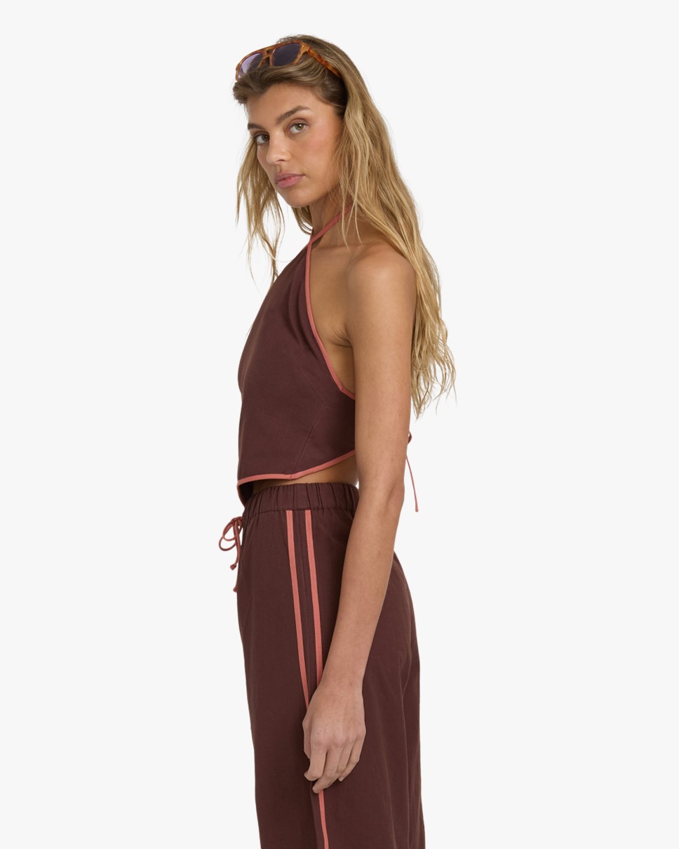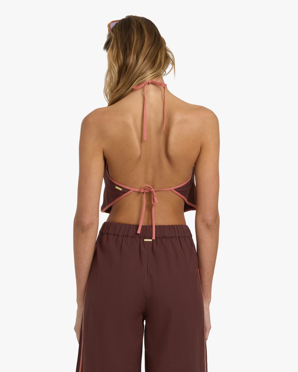 Shifting Paradise Coastal Crush Halter Top — Cropped halter top with a sexy open-back design.