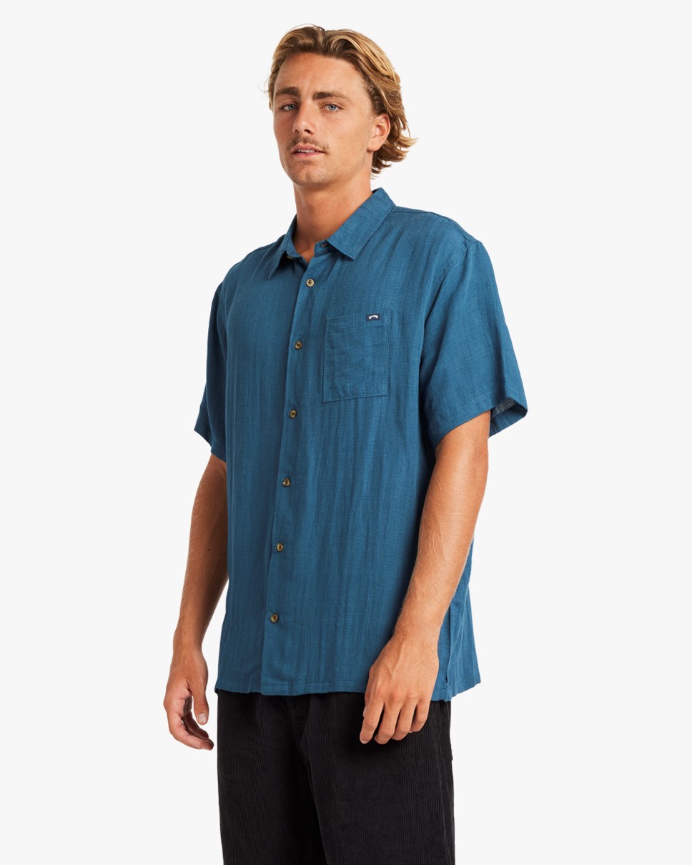 Mens Ricardo Short Sleeve Shirt-Blue